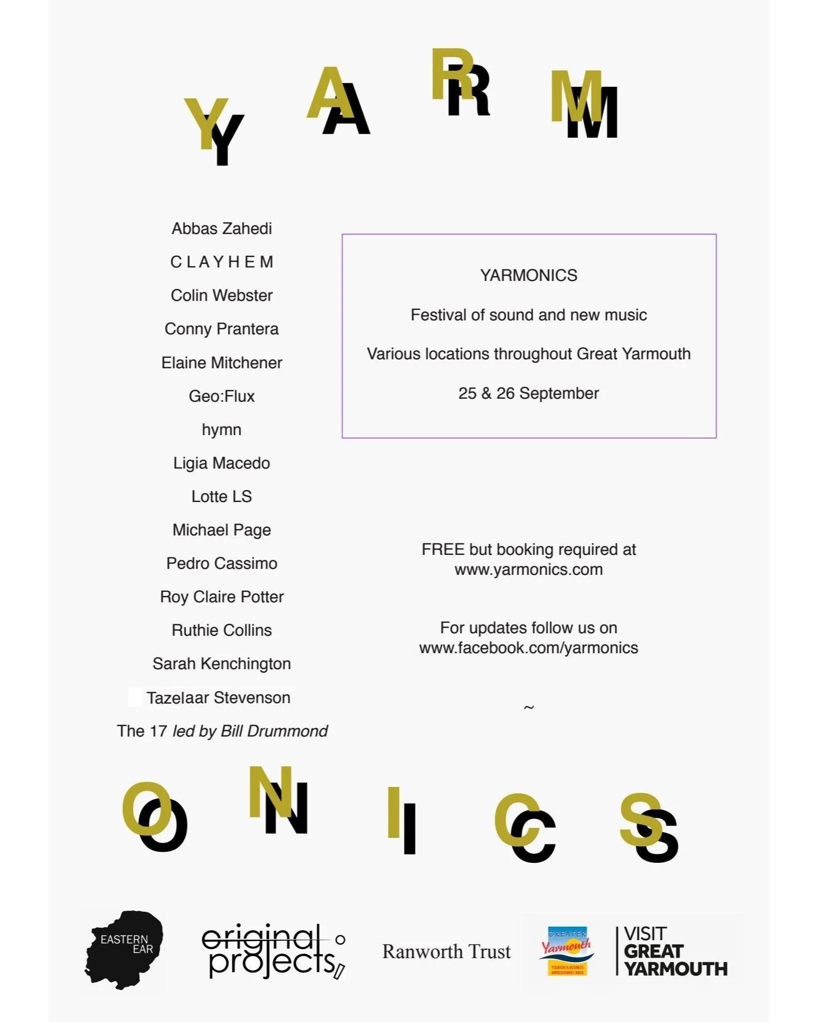 Thanks to the generous support of the Greater Yarmouth Tourism & Business Improvement Area all performances and installations will be recorded and available to listen to via an interactive map after the festival. We hope this provides an opportunity for audiences not able to make the weekend to revisit the sites and listen to the performances at a later date or at home.